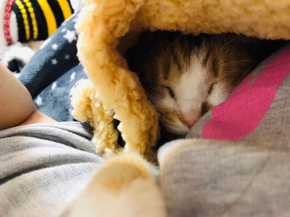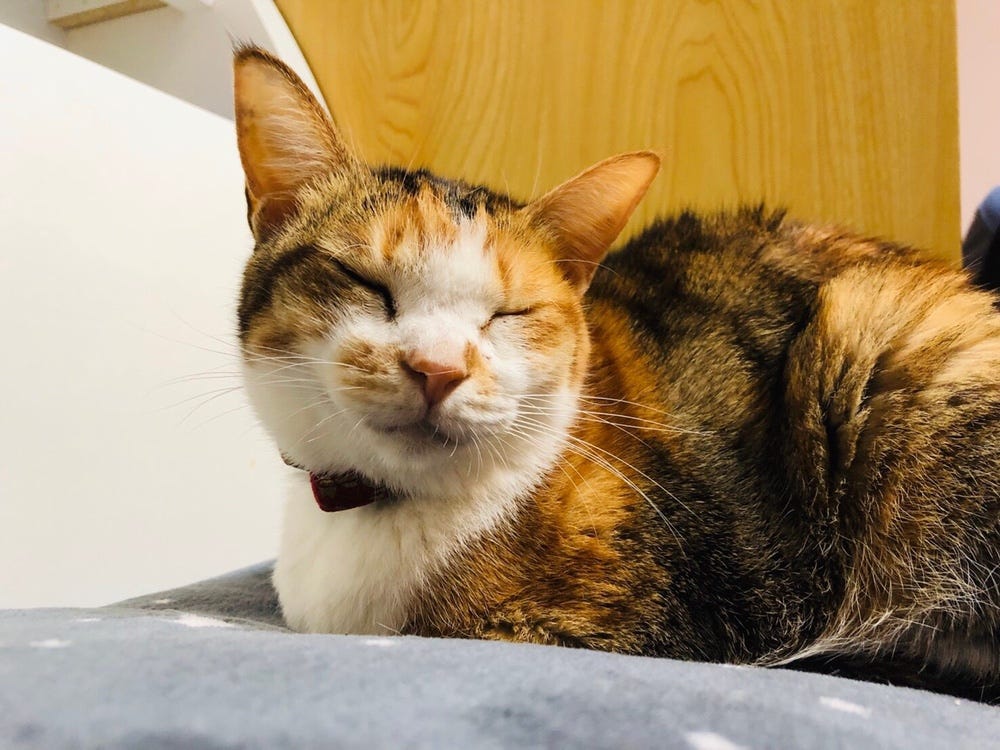 今天下午,他在我們的床鋪上睡覺,從他睡著的模樣,完全無法想像半年前我的手掌還被他給抓傷,無法想像他一來的時候是多麼的防備、多麼的退縮,現在他可以安穩地躺在你旁邊的角落,但你有任何的移動,他都會赫然驚醒然後迅速逃跑。