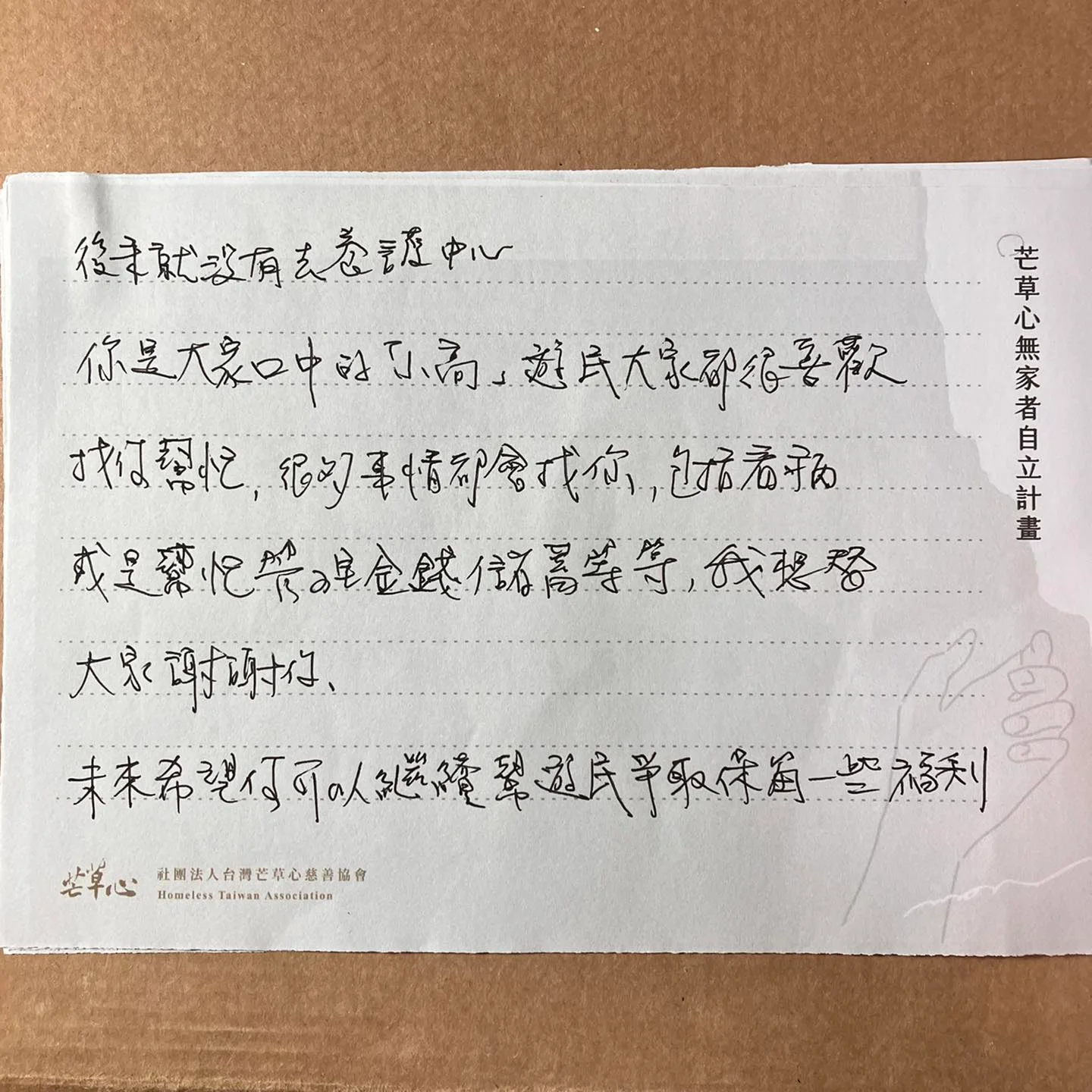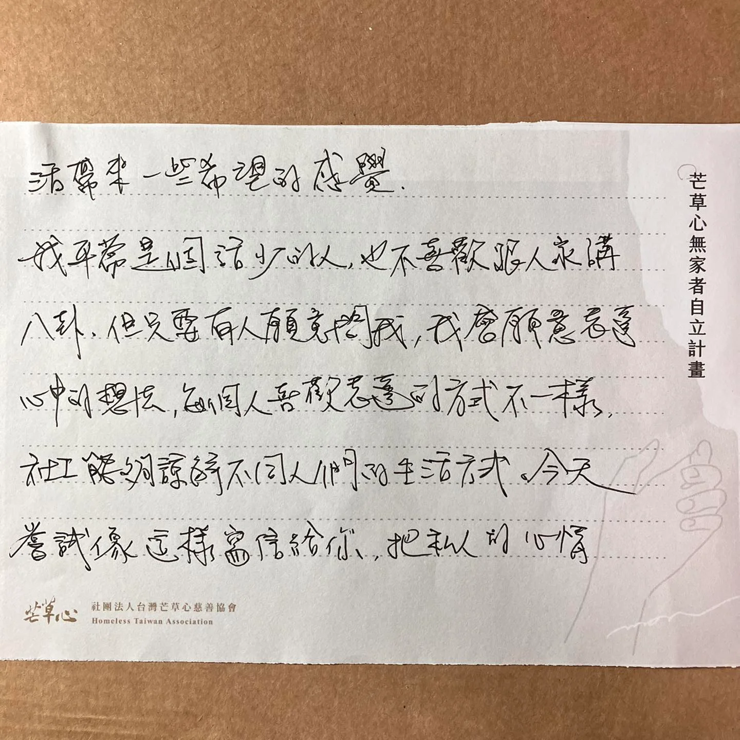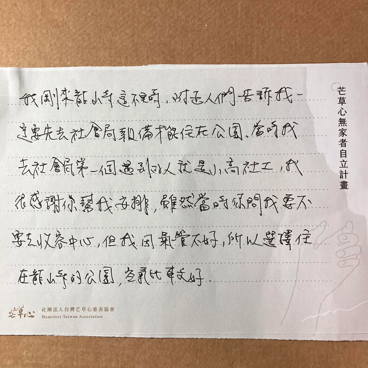 今天看到 芒草心慈善協會 分享給我的無家者手寫信1,第一個感覺是:「天哪!他的字好漂亮!」