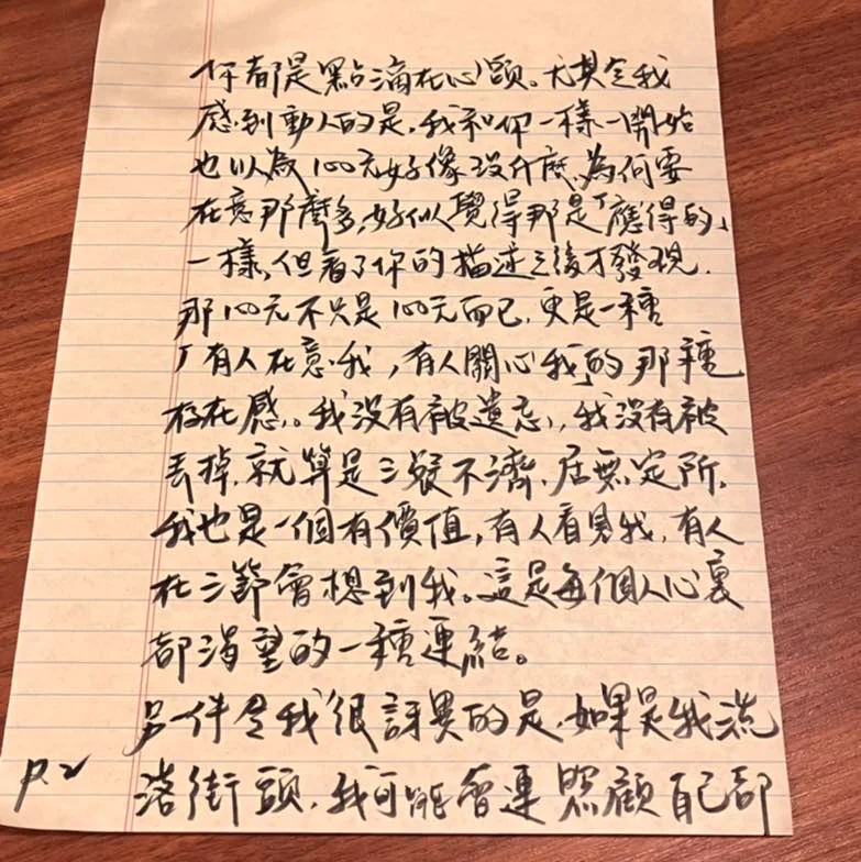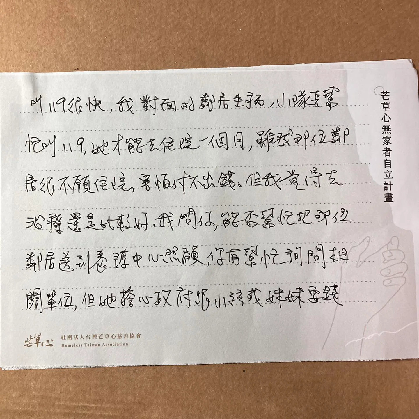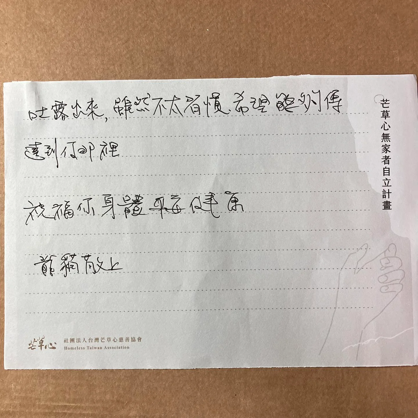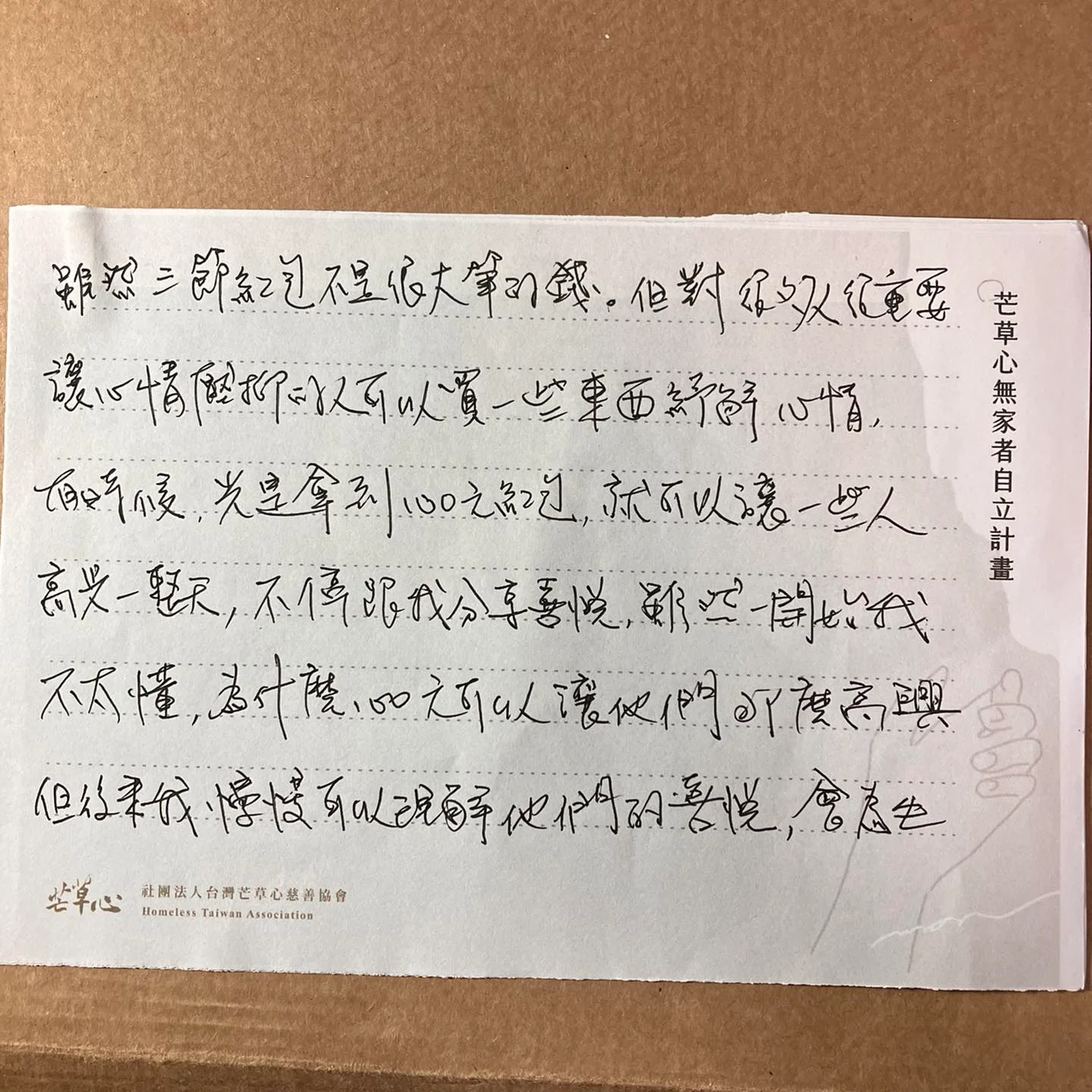 今天看到 芒草心慈善協會 分享給我的無家者手寫信1,第一個感覺是:「天哪!他的字好漂亮!」