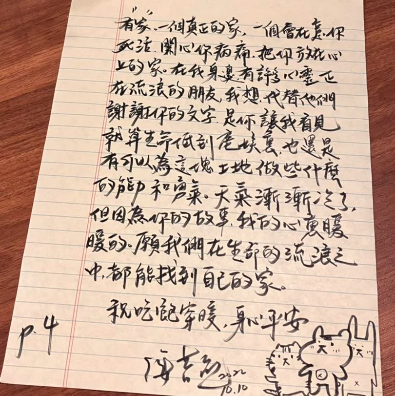 而且洋洋灑灑總共有10張紙(礙於篇幅我截取了幾張),可以感覺的出來他對小高社工的用心。一邊回信的時候,也一邊整理我自己的刻板印象。比方說我原本很不能夠理解,好不容易工作存的錢為什麼不租房子?但看了龍貓的信才知道,有地方住很重要,但心靈有個依靠更重要。