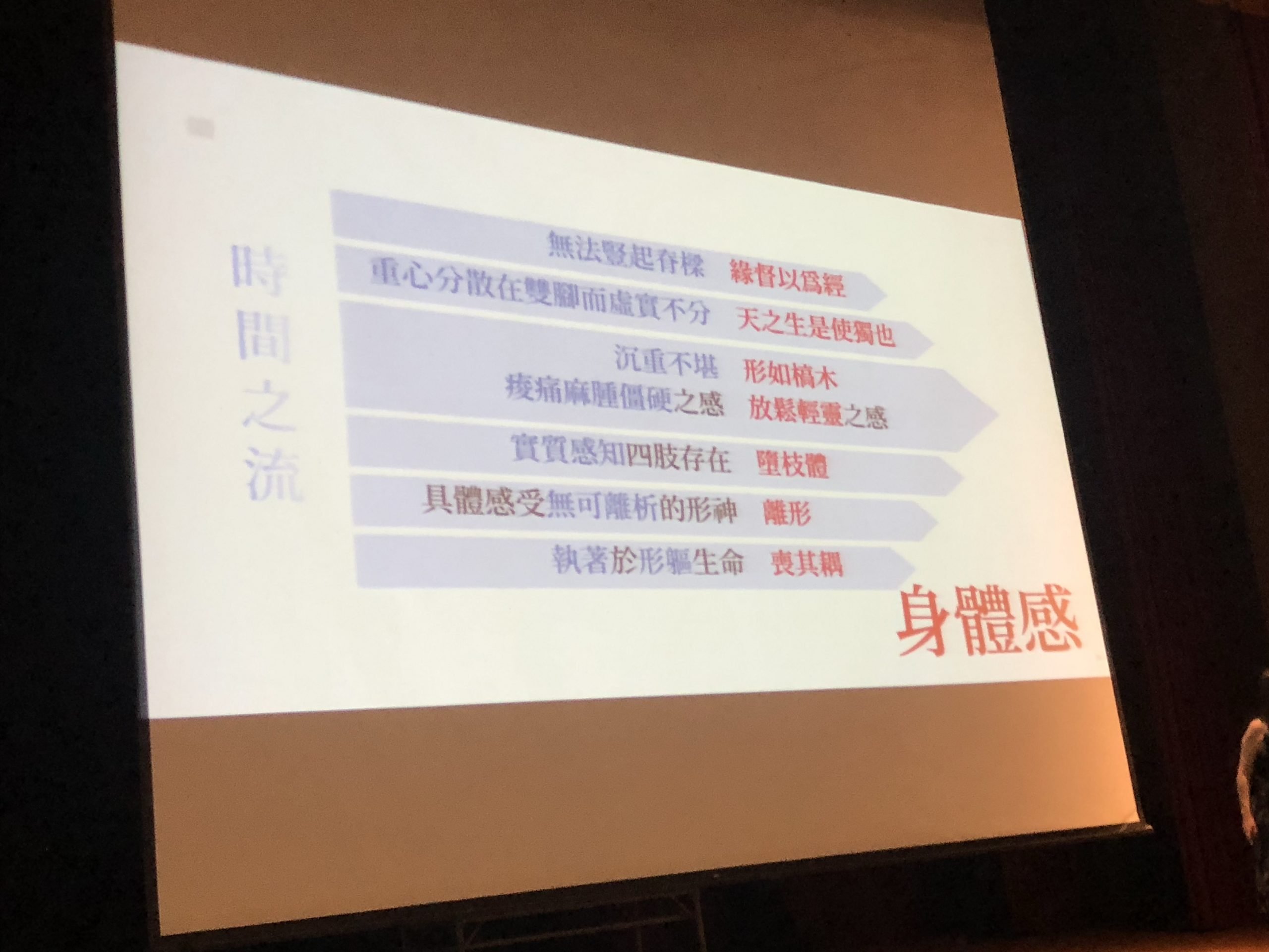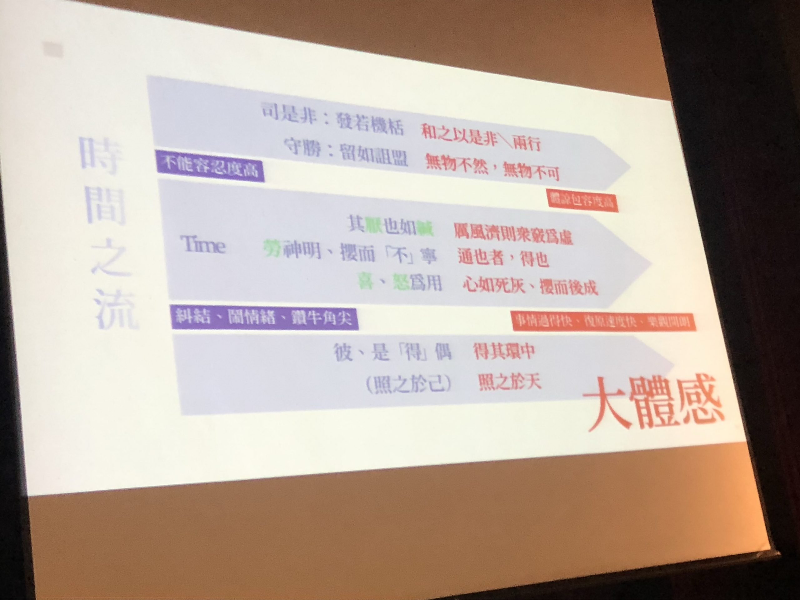 那是因為很多人讀了老莊不實踐,結果跟沒有讀一樣。但身體是騙不了人的,所以當你身體出狀況,就會想要開始改變(老師本人就是活生生的例子)。蔡老師說,現在的人不到黃河心不死,黃帝內經有個「黃」字,可以讓你提早走到岸邊(全場笑翻XD)。