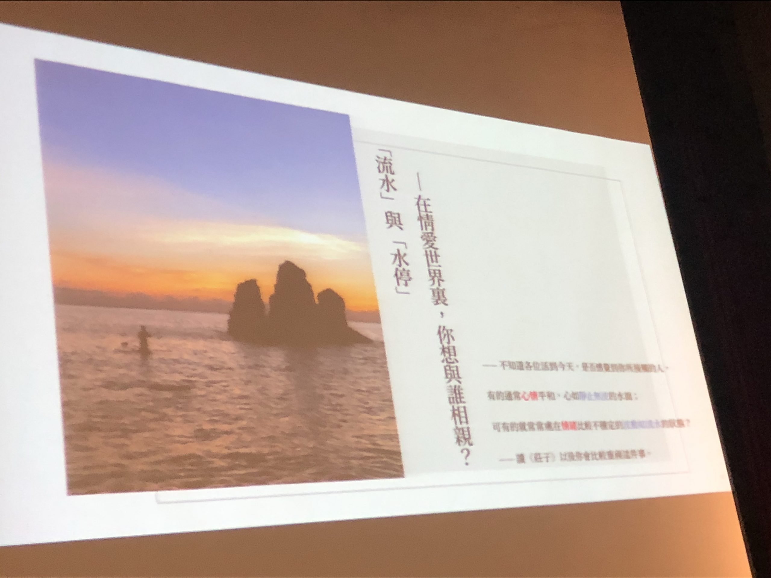 老師舉了個例子,他說台大有一個徘徊的瘋女子,當初因為被台大醫學系的男生拋棄(OS:不知道為什麼世上所有的負心漢都會被冠上台大醫學系的名號XD),可見得我們的心神是會因為感情而壞掉的(老師一開始還舉了房思琪的例子,不過我的想法是她的狀況不完全歸咎於感情)。所以不管是否在愛情裡,我們都要照顧好自己的身心。