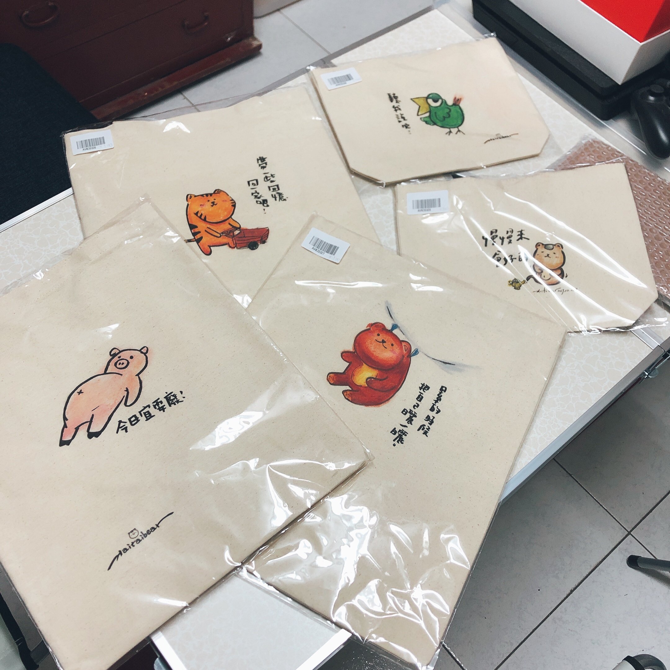 #帆布袋 #設計師手作 #插畫 #橘猫 #熊 #大嘴鳥 #豬豬