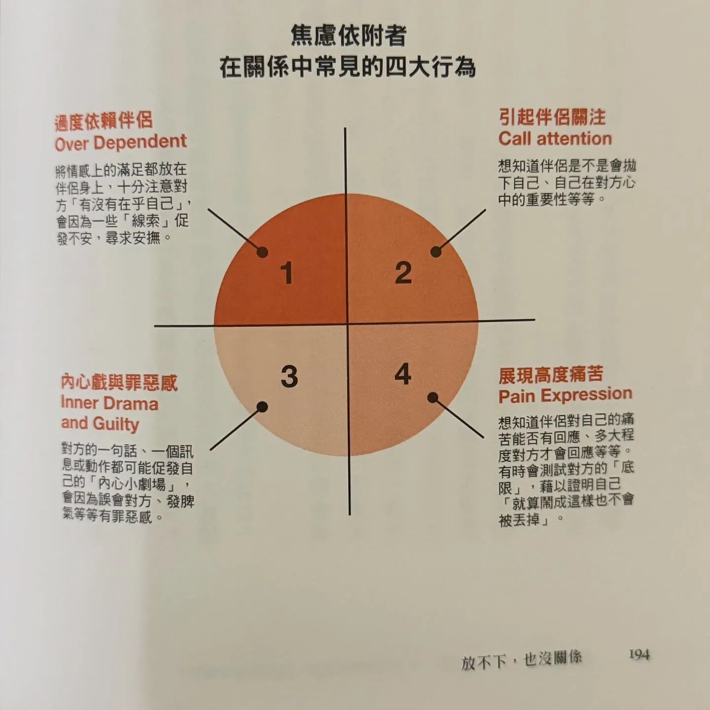 焦慮依附最大的痛苦在於:「我也不想這樣子,但我就是停不下來!」這裡的停不下來,包含:刻意展現痛苦,讓對方知道自己有多難受;刻意「壓抑」自己的痛苦,看看對方會不會「發現」自己很痛苦