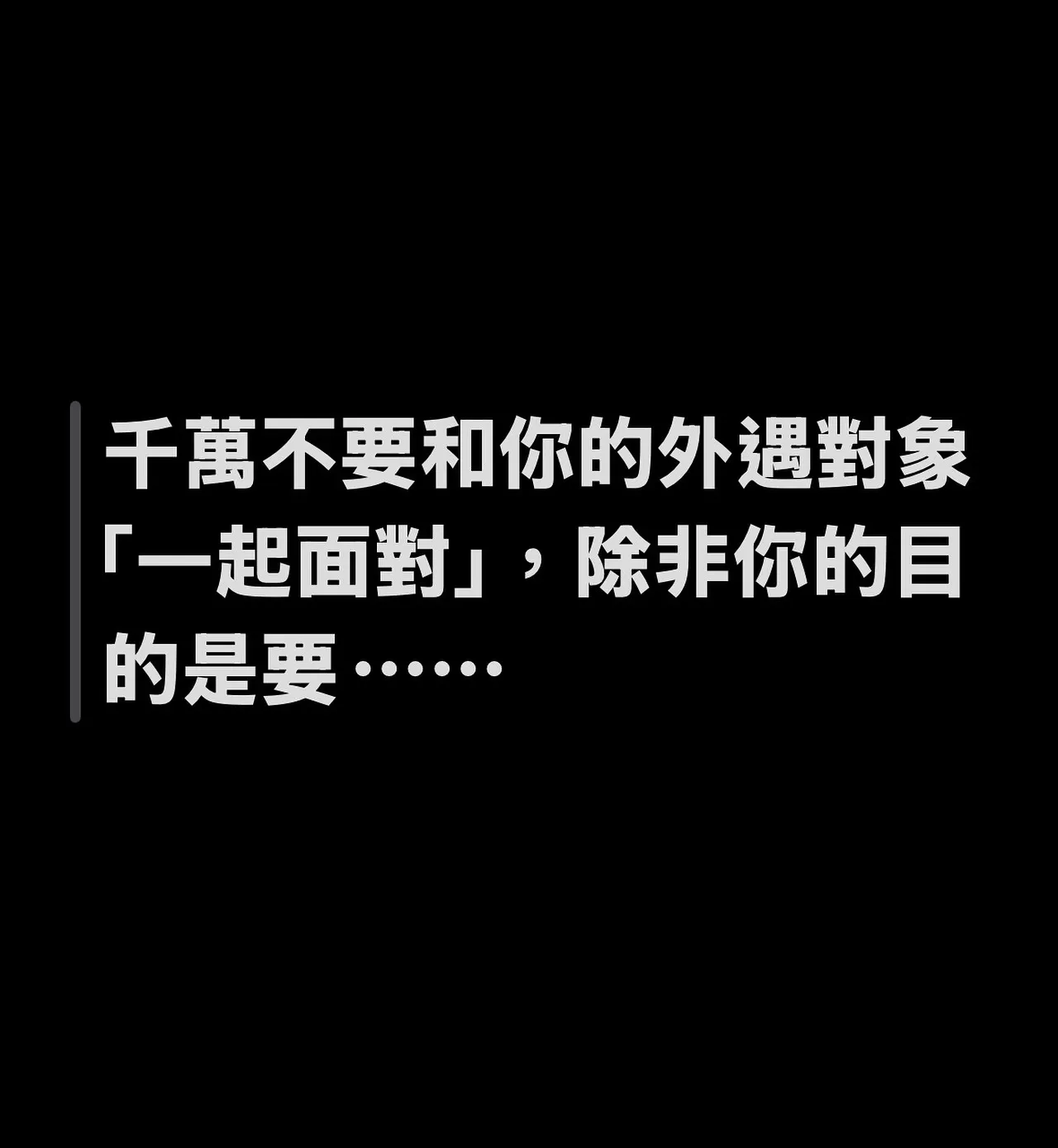 許多人說王子的第2封道歉信件很瞎,怎麼會「跟別人的太太一起面對」?其實,端看當事人想要的是什麼。你最後想要誰,就會想跟誰站在一起。站在范姜的觀點,等於是腹背受敵、雙重背叛,一邊是自己摯愛的女人,一邊是換帖的兄弟,再加上在演藝圈的聲量跟勢力、婚姻當中長期經濟跟地位的不平等等,如果是我的話一定會非常痛苦,痛苦到無以復加。